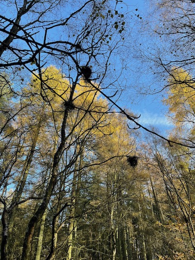 all the yellows It’s the last few days of autumn leaf colour here in Fife. Already pools of colour are saturating the ground rather than the sky. In Kemback the beeches have been letting their yellow-orange leaves go for a fortnight or more and the remainder make a graceful lacework. Above Jenny’s steps they have held on to them. We have had two storms pass through but not as strong as two years ago. The steps themselves a bit of a childish delight of swish and crunch. In Tarvit Mansion’s gardens more exotic trees and shrubs create spectacular effects. and everywhere larches are sifting down their yellow and rust needles. Even the Woodwos and forest monsters are taking on new aspects. at Lindores, walking around the loch this week in sunshine as well as at Kemback, the leaf colour is inspiration. Working on small paintings at Thursday evening sessions in the old station master’s house at Ladybank, which is a community art centre – Off the Rails Art House. Just two hours of company and concentration. Woodwos and now Scottish wild-cats. In fact my model was my friend Victoria’s pixie-bob cat, Ralph, with his extra claws. Whereas the little painting’s cat was inspired by the illustration (by Kipling himself) of the Cat that Walked by Himself in the Just So stories. “walking by his wild lone through the Wet Wild Woods and waving his wild tail.” But I think Ralph looks quite content staring out at you from the canvas of this new painting – The Cat’s Forest or Coille a’ Chait which has taken me weeks to get right. It’s a nice heavy quality box canvas from Jackson’s, 61 x 91 cm. So not a huge painting, but big enough to make it quite difficult after working on so many small ones. And the width of it, it’s a shape I’m not used to. Bims has her yellow jumper on too. from Sofa Dogs in Poland. And I made a seasonal feast with four different kinds of squash from Pittormie fruit and veg farm. Last Sunday we went for a glorious sunshine walk in Perthshire, from Scone. There was a lot of leafage The map and the actual paths didn’t quite match up (see red lines and our blue ones) It was actually quite hard work (see ascent) and we were all a bit shattered when we got home. Scott took both dogs and did some running up hills, which Bims thought was good fun. At least there was a bench at the MacDuff monument. and great views of the Trossachs and the Cairngorms. Tentsmuir, or rather Kinshaldy beach, has had a bit of a makeover due to very high tides and Storm Babet bringing easterly winds and swell. My favourite tree trunk at our turning point on the beach, has been swept up into what is left of a mixture of marram grass and reeds, off which water was still running a couple of days later. The high tides also destroyed the coastal path at Wemyss and some gardens in Cellardyke where old fishermens’ cottages back onto the shore. The Eden rose up with the first weather event, and stayed high for a couple of weeks. I spotted this cormorant on the railing of the path below South Bridge in Cupar. And the footpath along the road before the Ceres Moor “Road” was flooded and carved up by water that should have gone down a storm drain, but there was so much earth and potatoes from a field further up that it got blocked. The water had carved several small canyons into Kinshaldy beach, and the high tides washed up some interesting tree trunks. I do love trying to see the monsters in these. Here is my seat, it’s a big piece of a willow tree that arrived last year. Then this is one from Kemback woods. I have a new fun project with the watercolours. Painting rooms, sometimes with one of my paintings included, as above. These started with a club on Instagram, Room portrait club, where a photo of a usually rather bohemianly furnished (and cluttered) room is posted and people have a go at painting it. Like this – and this – and this. It’s a nice challenge, I haven’t done anything like it before. Of course it means there are about fifty very similar paintings being posted on Instagram, but it’s a learning curve for me. I’m just doing them in an A4 sketchbook. But I do like the idea of including one of my paintings, using a virtual room from the “Art Rooms” app and changing it a bit. It’s interesting to do a version of these recent paintings, in miniature. I spent rather a lot of money restocking my watercolours. These are from Germany, and they use natural earths and other interesting pigments, which allows for good granulation. They are very splendid for doing things like this – another tree root monster, it looks just like a bear from several angles. These things change completely when I do them in acrylic. This is quite a small box canvas, WHERE WERE YOU ONCE, 2023, 30.5 x 25 x 4 cm. An even smaller one, Look I am chosen as a Bear, acrylic on gessoed panel 20cm x 25cm and 2 cm deep. This is a very smooth surface to paint on. Artist Support Pledge gave me a special award for it, donated by Artists’ Surfaces, a company that makes beautiful panels that don’t warp. I am going to be getting one in the post, that’s quite exciting. They also mentioned this one, Kith, Acrylic on cradled board, 25cm x 20cm another one with the wood backing that makes it 2 cm deep, and this one, Where have you been? Acrylic on canvas-covered board 25cm x 25cm. I have quite a pile of these little paintings now, I set up a painting table in my back bedroom for it so I can keep the watercolour table set up in the living room. But now I have brought my spare easel indoors – the studio is just too cold now – it was 5 C this morning, and put a dust sheet down to protect the floor. Meanwhile I have some serious sewing to do for Christmas presents for these two. poems to write, and wood monsters to think about – Wood or Wodwos. Here is Ted Hughes’ poem Wodwo What am I? Nosing here, turning leaves over Following a faint stain on the air to the river’s edge I enter water. Who am I t