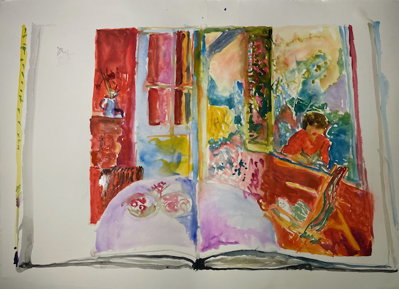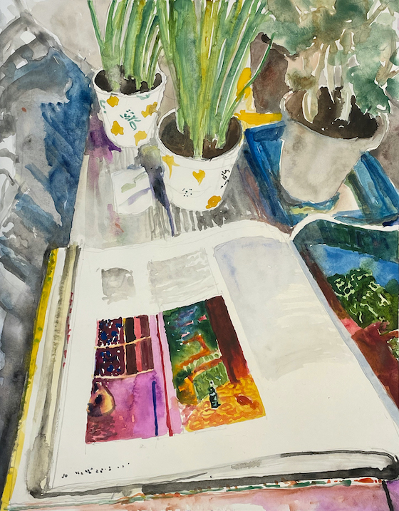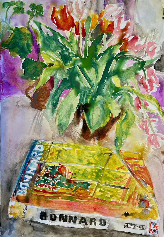Bonnard book on plant table, watercolour on acid-free 140 gsm paper, 297 x 420 mm